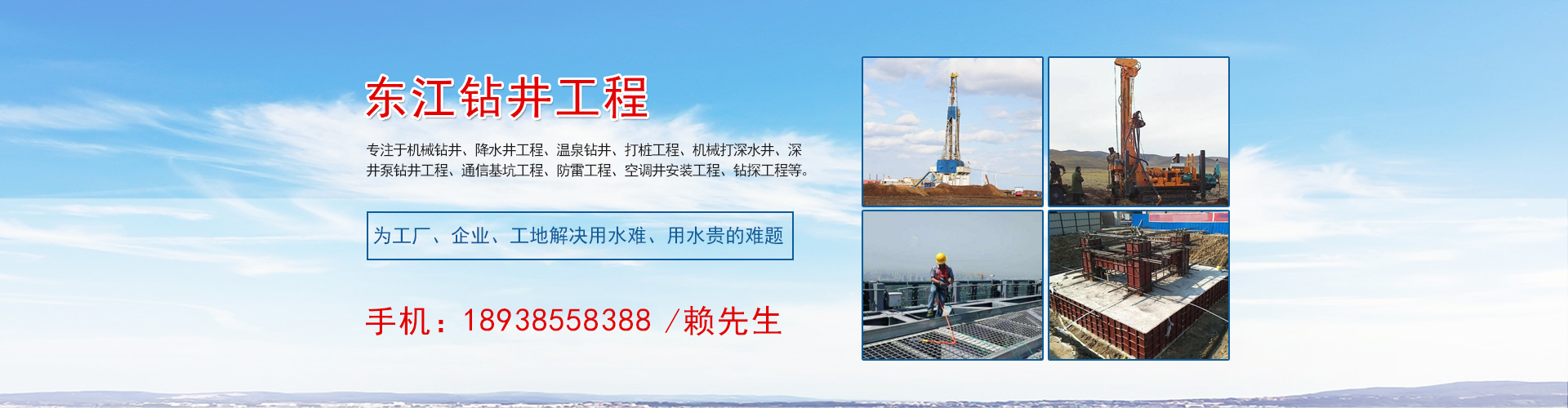 東莞市東江鉆井工程有限公司專注于機械鉆井、降水井工程、溫泉鉆井、打樁工程、機械打深水井、深井泵鉆井工程、通信基坑工程、防雷工程、空調井安裝工程、鉆探工程等。